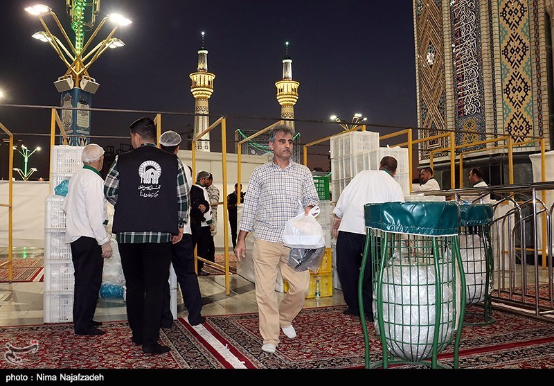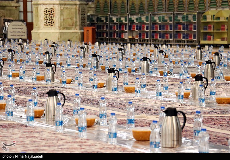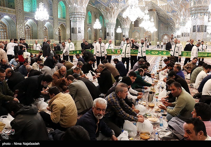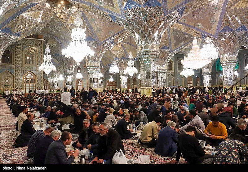 همزمان با ایام ماه مبارک رمضان، آیین ضیافت افطاری با حضور زائران و مجاوران در حرم مطهر امام رضا (ع) برگزار و روزهداران در فضایی معنوی، روزه خود را در جوار بارگاه منور رضوی افطار کردند.