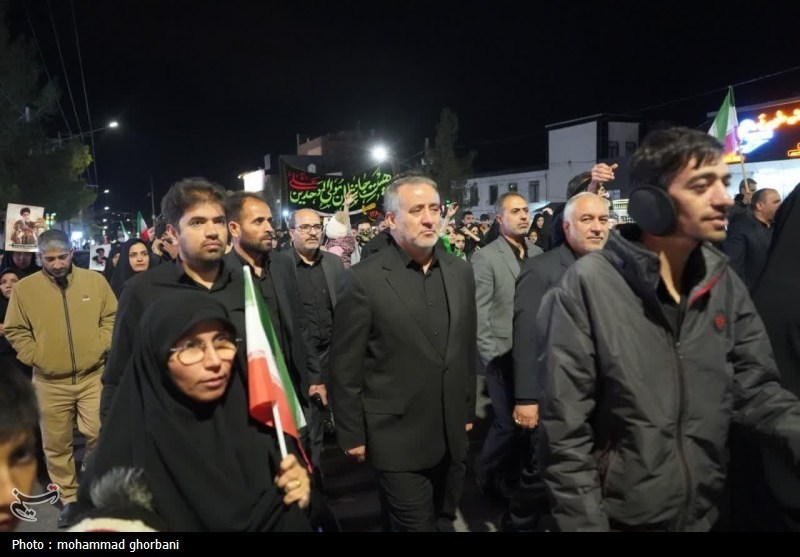 سومین شب سوگواری وعزاداری مردم بیرجند با حضور استاندار وفرمانده سپاه خراسان جنوبی در خیابان معلم بیرجند برگزار شد.
