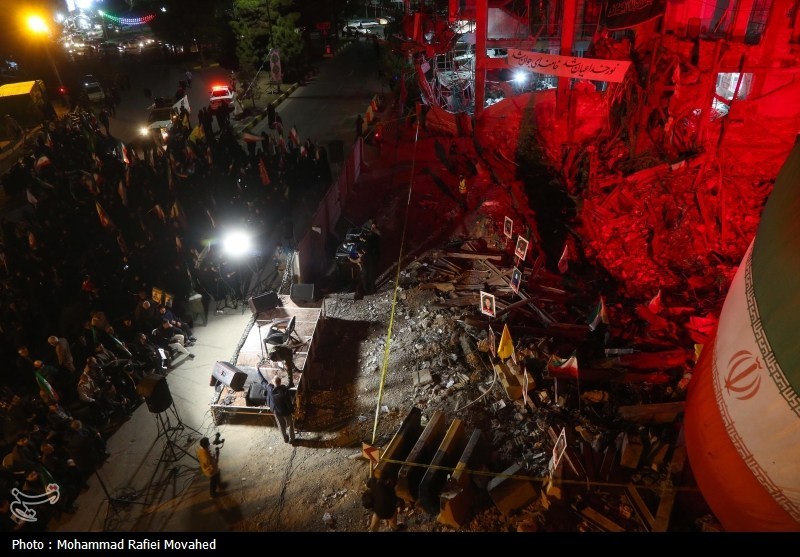 مراسم اربعین رهبر شهید انقلاب و شهدای دبیرخانه خبرگان رهبری، جمعه 28 فروردین 1405، در محل اصابت پرتابه و ساختمان تخریب شده دبیرخانه مجلس خبرگان رهبری در قم با حضور مردم برگزار شد.