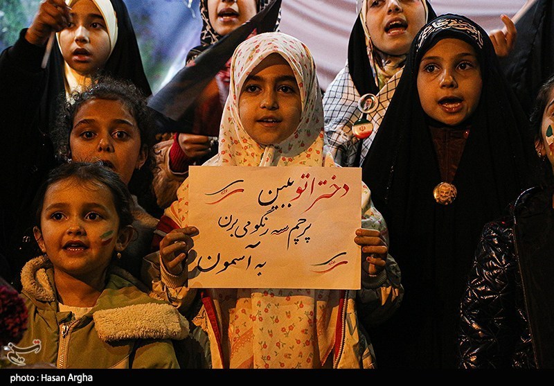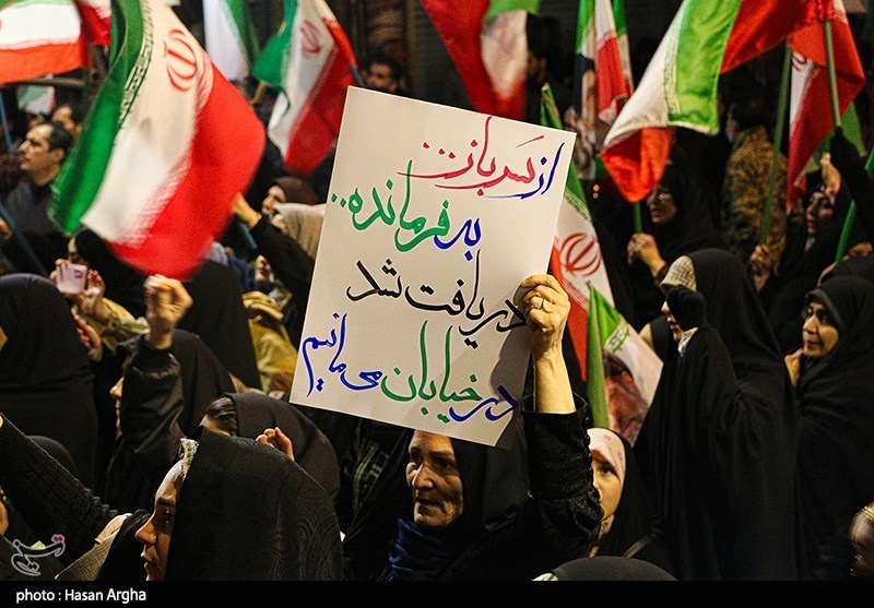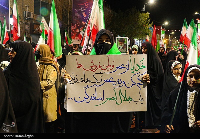 دختران و بانوان شجاع و غیور زنجانی در شب ولادت باسعادت حضرت فاطمه معصومه(س) باحضور در میدان انقلاب زنجان حمایت و جانفشانی در راه ایران عزیز را فریاد زدند.