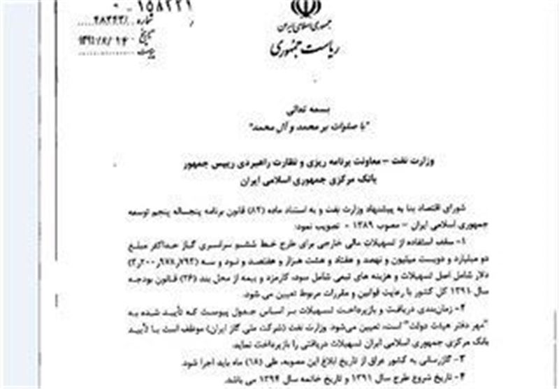شرکت ملی گاز موظف شد با تائید بانک مرکزی تسهیلات دریافتی را بازپرداخت نماید و همچنین گازرسانی به عراق را از تاریخ ابلاغ این مصوبه یعنی آبان 91 طی 18 ماه اجرا کند. تاریخ شروع طرح سال 91 و خاتمه آن سال 94 اعلام شده است.