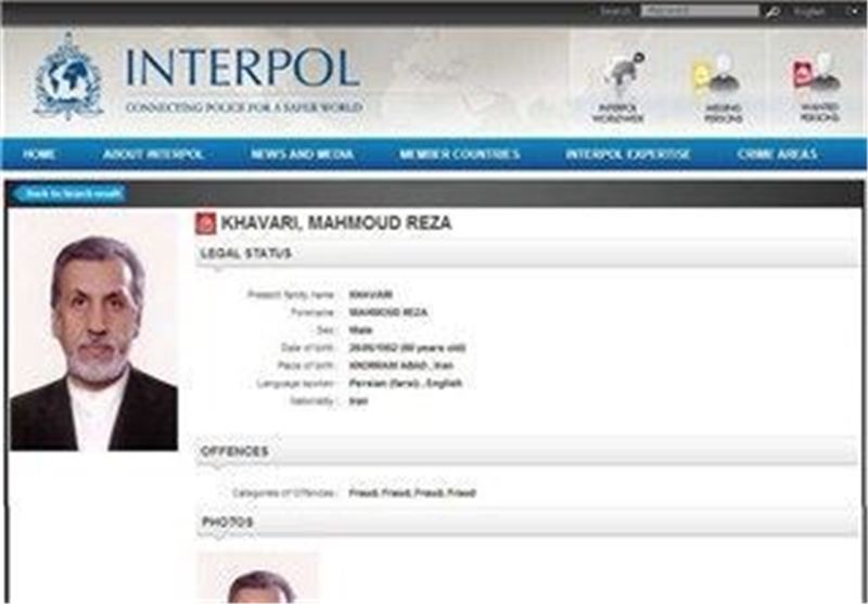 بنا به این گزارش ،اخیرا وبه تازه گی عکس ونام محمودخاوری درسایت پلیس بین الملل با ذکر چهاربارکلمه کلاهبرداری;"fraud"منتشر شده است. بنا به قوانین اینترپل مقامات قضایی وپلیس تمامی کشورها موظف هستند به محض رویت متهم وی را دستگیر ودراختیار پلیس بین المللی قرار دهند.