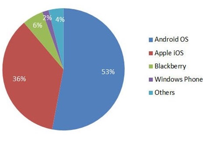 سیستمعاملهای بلکبری و ویندوز فون نیز به ترتیب با در اختیار داشتن 6 و 2 درصد از سهم بازار در ردههای بعدی قرار گرفتهاند.