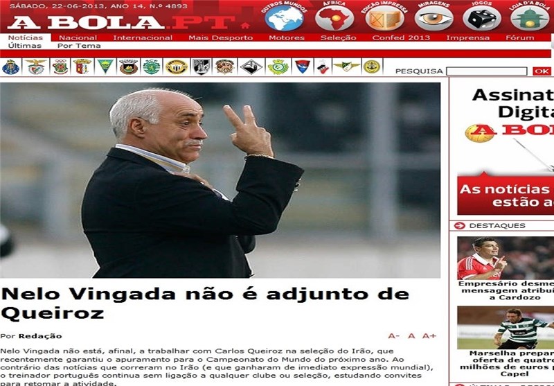 این نشریه پرتغالی نوشت: برخلاف اخباری که بالافاصله بعد از صعود تیم ملی ایران به جام جهانی 2014 منتشر شده، وینگادا نه تنها از سوی این تیم بلکه از سوی هیچ تیمی باشگاهی در ایران پیشنهاد همکاری نداشته است.