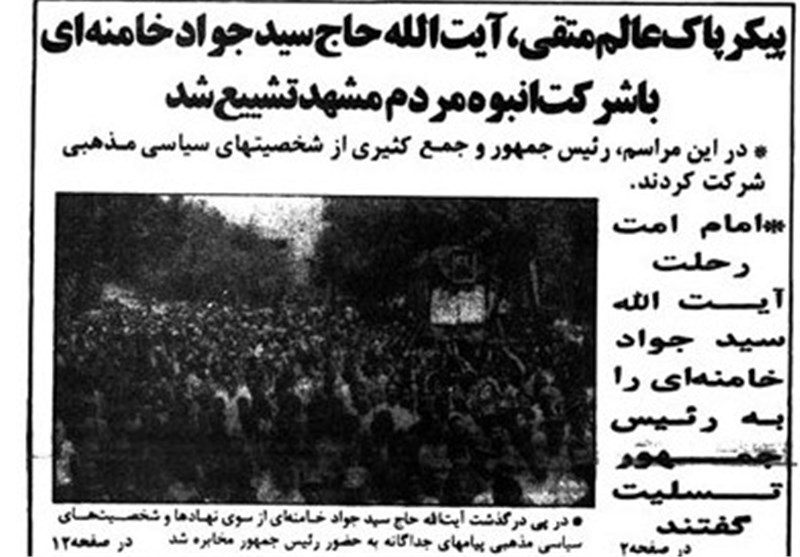 به گزارش گروه فرهنگی خبرگزاری تسنیم، چهاردهم تیرماه 1365، خبری مهم در کشور پیچید. آیت الله سید جواد خامنهای دعوت حق را لبیک گفت. مشهد در سکوت غوطهور شد و سکوت و بهت سراپای پامنبریهای آیت الله سیدجواد خامنهای در مسجد امام حسن مجتبی را گرفت. تیتر یک روزنامهها کثیر الانتشار را شعار مردم مشهدی تشکیل داد: رییس جمهور ما تسلیت تسلیت ، پدر آیت الله سیدعلی خامنهای رئیس جمهور وقت دار فانی را وداع گفت عالمی که به گفته امام امت عمری را با علم و تعهد و تقوا به سر برده بود.