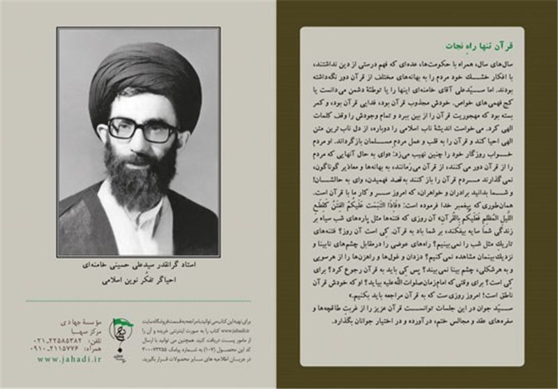 سالهای سال، عدهای که فهم درستی از دین نداشتند، با افکار خشک خود مردم را به بهانهها و معاذیر مختلف از قرآن دور نگهداشته بودند که مثلاً فهم قرآن کار مردم عادی نیست و فقط قرآن را باید به امید ثوابش خواند و این حرفها. حرفهایی که حکومتها از آن استقبال میکردند. اما سیدعلی آقای خامنهای اینها را یا توطئۀ دشمن میدانست یا کجفهمیهای خواص. خودش مجذوب قرآن بود، عاشق قرآن بود، فدایی قرآن بود، و کمر بسته بود که مهجوریت قرآن را از بین ببرد. یکّه و تنها، با قامتی رشید، با کلامی گرم و گیرا، قرآن به دست میگرفت، پشت تریبون میایستاد، و تمام وجودش را وقف کلمات الهی میکرد. میخواست اندیشۀ ناب اسلامی را دوباره، از دل نابترین متن الهی احیا کند و قرآن را به قلب و عمل مردم مسلمان بازگرداند. او بر سر طاغوتهایی که بنایشان محو کامل محتوای معجزۀ ابدی خاتم پیغمبران و محدود کردن آن به جلدی و اوراقی بود، اینچنین فریاد میزد که: