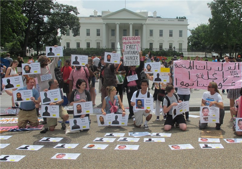 دهها نفر از افراد شرکت کننده در این تظاهرات با در دست داشتن تصاویر زندانیانی که در سلول انفرادی گوانتانامو بسر میبرند شعار میدادند: "تنها چیزی که میخواهیم حقوق بشر است."