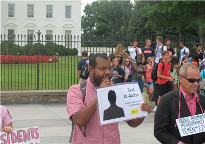 به گزارش خبرنگار بینالملل خبرگزاری تسنیم مستقر در آمریکا؛ در اول آگوست راس ساعت ١ بعد از ظهر همزمان با دیدار و نشست رییس جمهور جدید یمن منصور هادی و اوباما ،دهها نفر از مردم واشنگتون در اعتراض به زندانی نگه داشتن مردم بیگناه یمن در زندان گوانتانامو و استفاده از پهپادها در کشتار بسیاری از مسلمانان در این کشور مقابل ساختمان کاخ سفید دست به تظاهرات زدند.