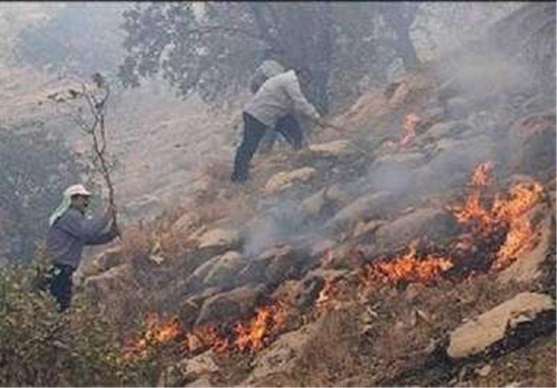 گسترش دامنه  آتش در جنگل گلستان/ وزش باد عامل گسترش حریق