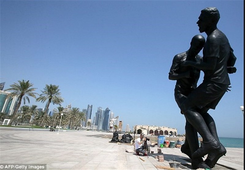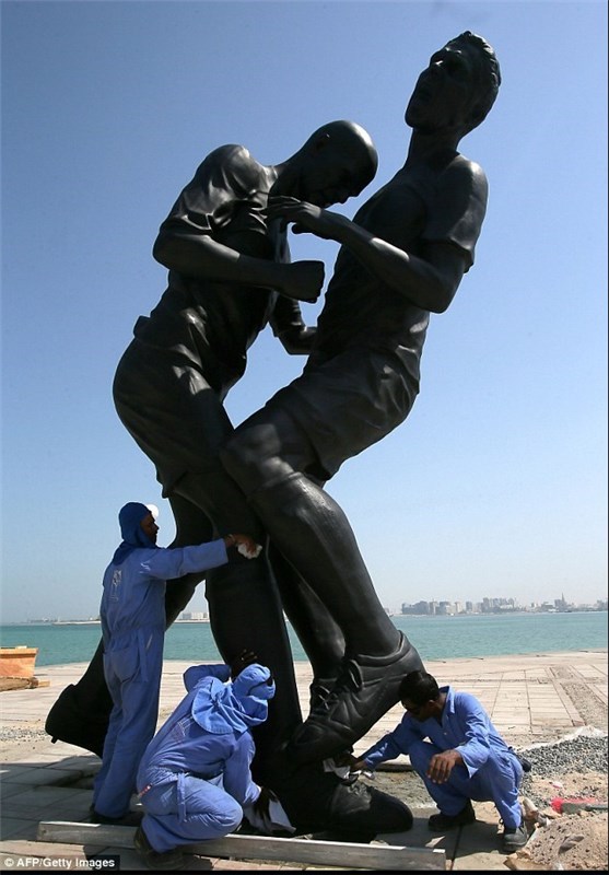 این مجسمه برای نخستین بار در پاریس رونمایی شد و حالا قطری‌ها آن را در سواحل خود به نمایش در‌آورده‌اند تا بلکه نظر فوتبال‌دوستان بیشتری را برای میزبانی این کشور از جام جهانی 2022 جلب کنند.
