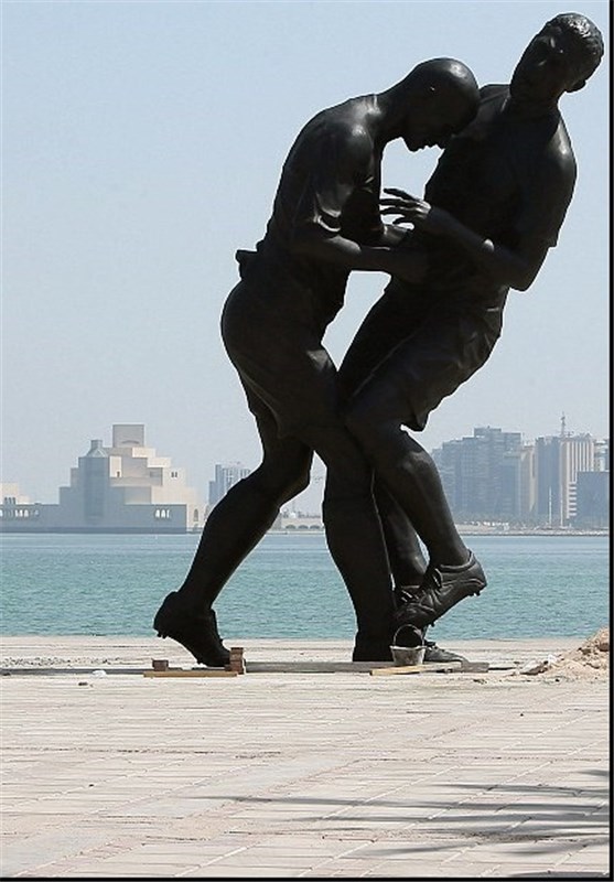 به گزارش خبرگزاری تسنیم، قطری‌ها در راستای تلاش برای حفظ میزبانی رقابت‌های جام جهانی 2022 و کم شدن فشاری که روی این کشور به خاطر عدم برخورداری از شرایط مساعد برگزاری مهم‌ترین تورنمنت فوتبالی دنیا وجود دارد؛ برای توریستی‌تر کردن کشورشان و افزایش جاذبه‌های گردشگری خود مجسمه صحنه ضربه سر زین‌الدین زیدان به مارکو ماتراتزی را به کشور خود آورده‌اند.