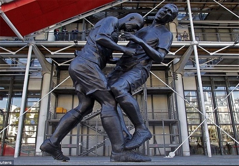 رونمایی از مجسمه ضربه سر زیدان به ماتراتزی در پاریس