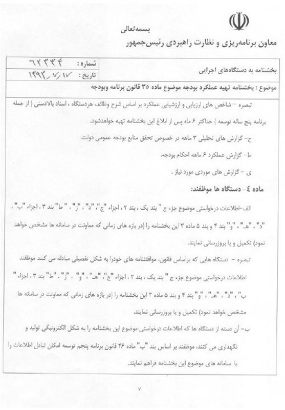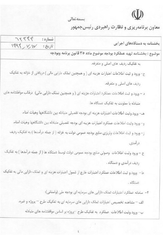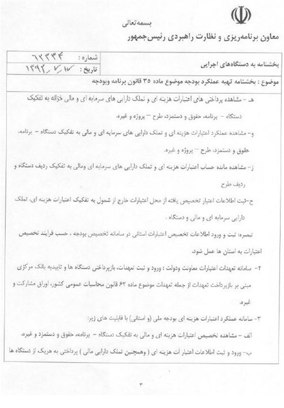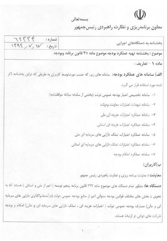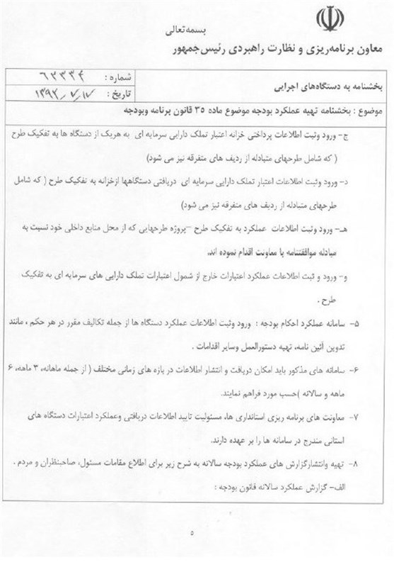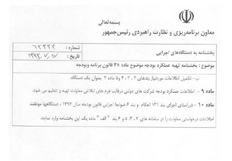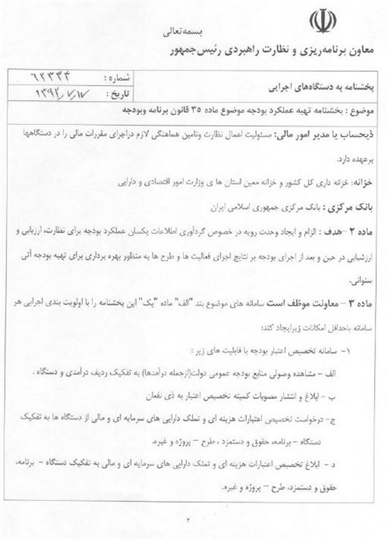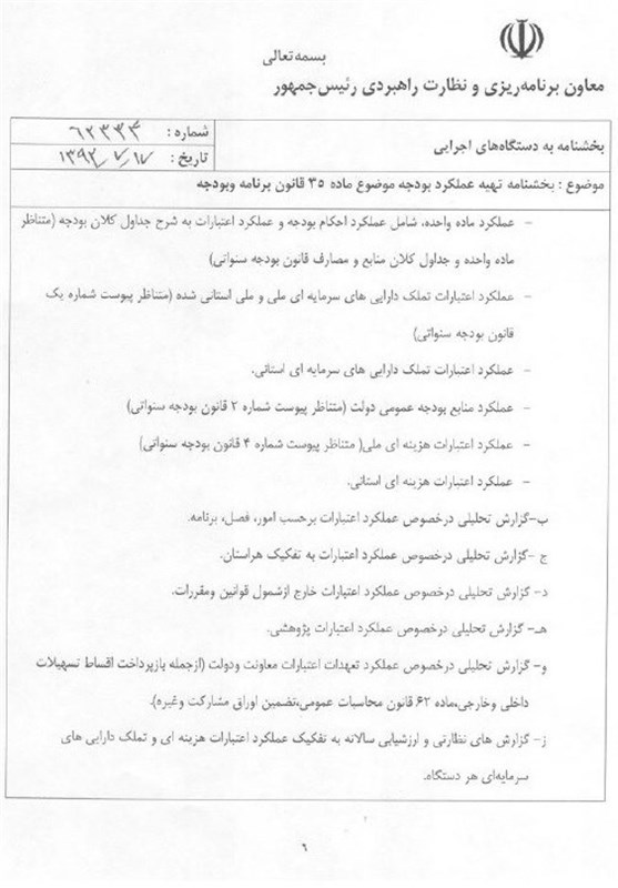 نوبخت بخشنامه تهیه عملکرد بودجه را ابلاغ کرد+تصویر بخشنامه