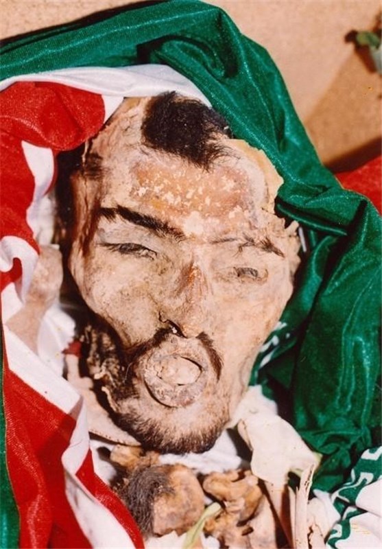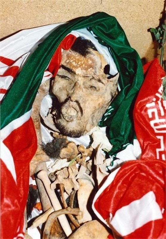 پیکر شهید سیدصمد حسینی که پس از 13 سال با صورتی سالم در جریان تفحص شهدا پیدا شد