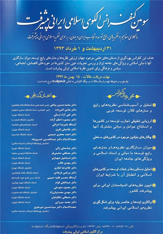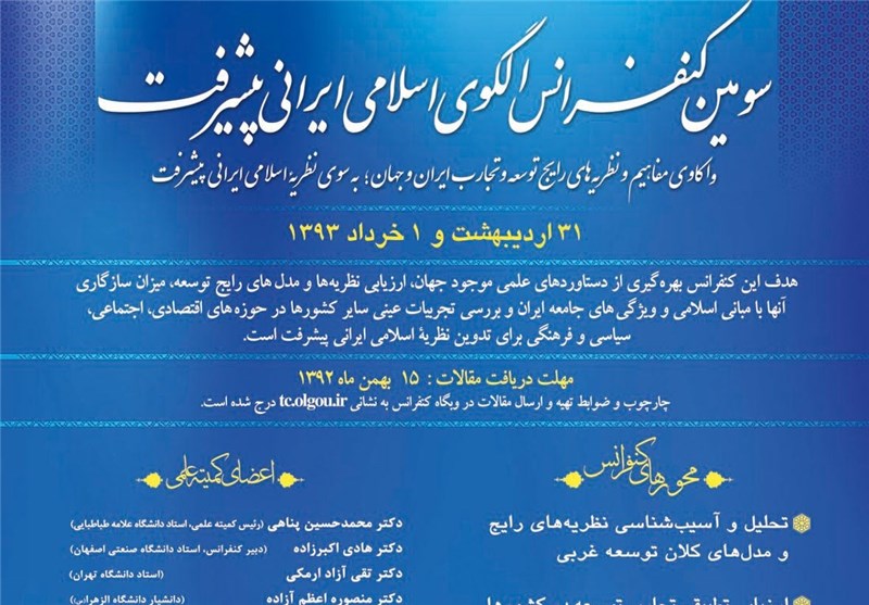 به گزارش خبرگزاری تسنیم، سومین همایش سالانه الگوی اسلامی ایرانی پیشرفت با موضوع «واکاوی مفاهیم و نظریه های رایج توسعه و تجارب ایران و جهان: به سوی نظریه اسلامی ایرانی پیشرفت» در روزهای 31 اردیبهشت و اول خرداد ماه سال آینده از سوی مرکز الگوی اسلامی ایرانی پیشرفت برگزار می شود.