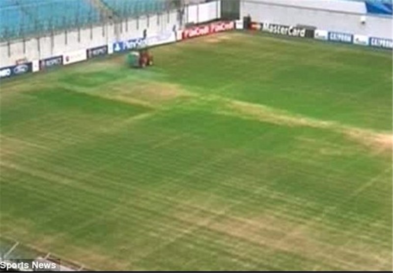 این بازی که در ورزشگاه خیمکی آرهنا برگزار میشد حواشی خاص خود را داشت. مانوئل پیگرینی، سرمربی آبیهای منچستر پیش از این از کیفیت زمین این ورزشگاه انتقاد کرده بود و عنوان کرد این زمین محل مناسبی برای برگزاری مسابقات لیگ قهرمانان اروپا نیست. مسئولان برگزاری مسابقه هم برای اینکه چمن رنگو رو رفته این ورزشگاه را از دید عموم دور نگه دارند با یک تراکتور مجهز به اسپری، چمن ورزشگاه را رنگ زدند تا حداقل در ظاهر بر ایراد چمن ورزشگاه سرپوش گذاشته باشند.