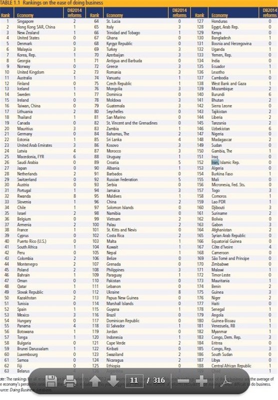سقوط 7 پله ای ایران در رده بندی فضای کسب‌وکار + جداول مقایسه ای