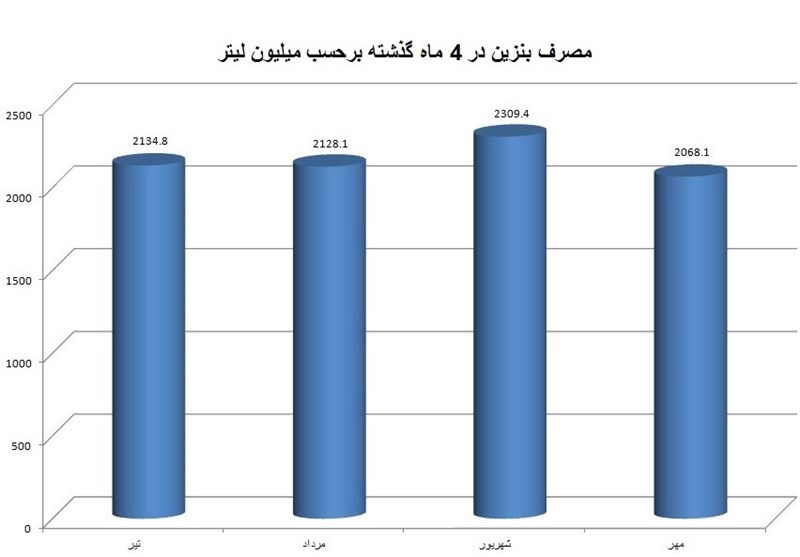 آغاز پاییز با کاهش مصرف بنزین نسبت به تابستان همراه بود. در تابستان سال جاری، 2 میلیارد و 134 میلیون و 800 هزار لیتر بنزین در تیر، 2 میلیارد و 128 میلیون و 100 هزار لیتر بنزین در مرداد و 2 میلیارد و 309 میلیون و 400 هزار لیتر بنزین در شهریور به مصرف رسید.