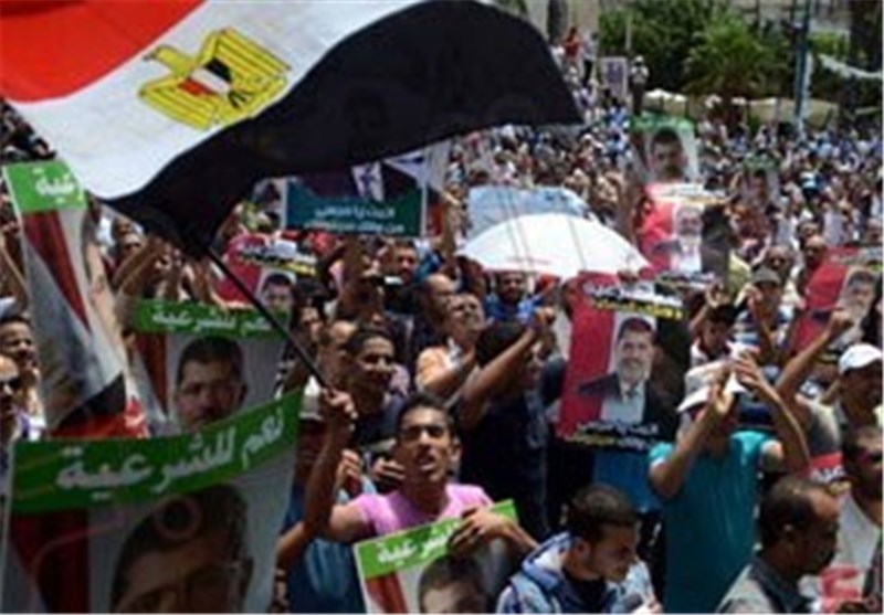 به گزارش گروه بینالملل خبرگزاری تسنیم به نقل از رویترز، محمد مرسی رئیسجمهور برکنار شده مصر لحظاتی پیش در داخل دادگاه بر ضد حکومت نظامی شعار داده است و علامت میدان رابعه را با انگشتان خود نشان داده است. وی همچنین به رئیس دادگاه گفته است که من رئیس جمهور قانونی تو هستم و تو باطل هستی.