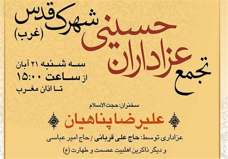 به گزارش خبرگزاری تسنیم، تجمع بزرگ عزاداران حسینی(ع) روز سهشنبه هشتم محرم از ساعت 15 در شهرک قدس(غرب) تهران و با حضور هیئات عزاداری مناطق شهرک قدس، سعادت آباد و فرحزاد برگزار میگردد.