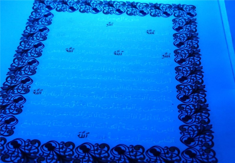 این خطاط قرآن گفت: این قرآن روی کاغذ مرغوب و تذهیب‌کاری شده با یک جوهر نامرئی که فقط زیر نور «یووی» دیده می‌شود نگاشته شده است. این کار حدود 2 سال پیش آغاز شد و تاکنون بیش از 700 ساعت کار برده است. ایده انجام این کار سر نماز به من القا شد و من این را به فال نیک می‌گیرم. من تاکنون هیچ کلاس خطاطی‌ای نرفتم و کسی هم به من آموزش نداده، برای خودم هم جای تعجب است که چطور توانستم این کار را انجام دهم.
