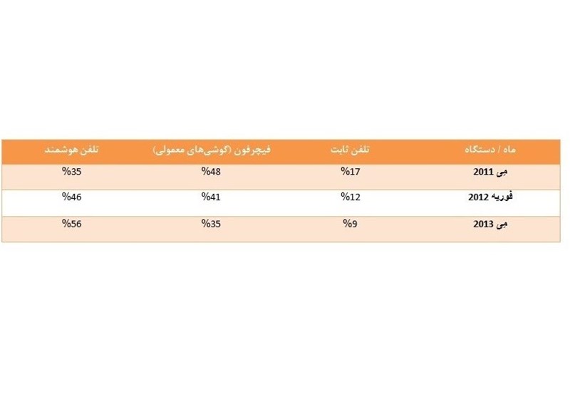 آماری از میزان مقبولیت دستگاههای تکنولوژیک در بین سه رده تلفنهای معمولی(ثابت)، فیچرفون و تلفن هوشمند گویای این است که مقبولیت تلفنهای ثابت از سال 2011 تاکنون، میانگین نزدیک به چهار درصد کاهش یافته است.
