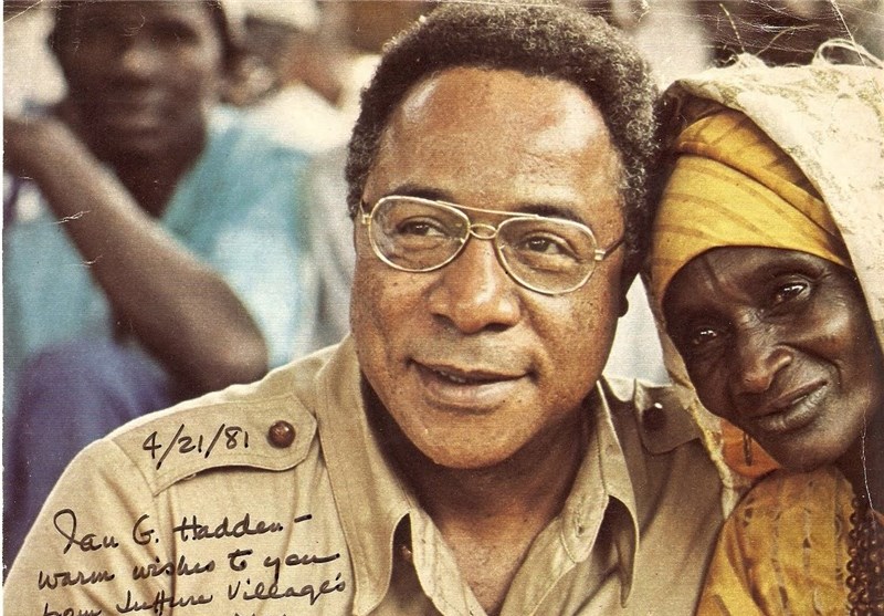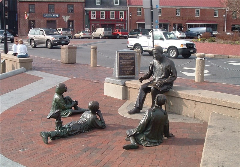 تندیسی معروف از الکس هالی که «ریشهها» را برای کودکان روایت میکند