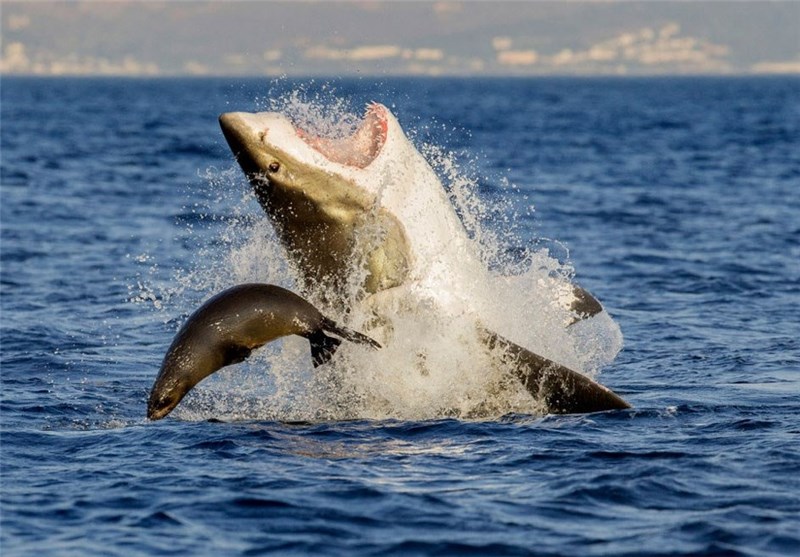 کوسه ای در تلاش برای خوردن یک فوک کوچک در سواحل آفریقای جنوبی