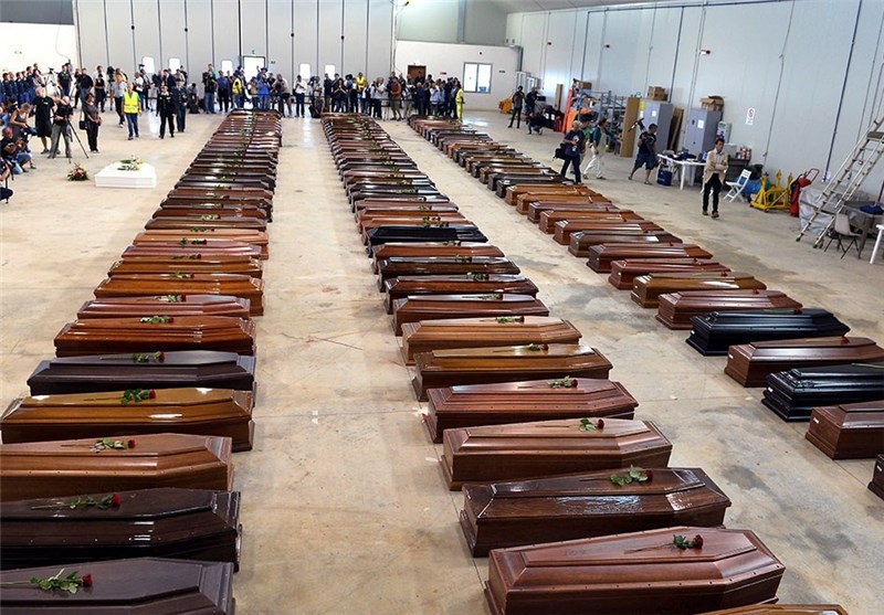 تابوت افراد غرق شده در جزیره "لامپدوسا"