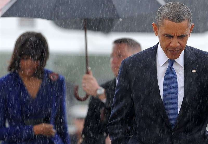 اوباما و همسرش زیر باران