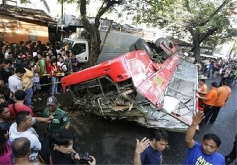 پلیس اعلام کرد که این اتوبوس صبح روز دوشنبه در حومه مانیل از روی روگذر بر روی ون افتاد.
