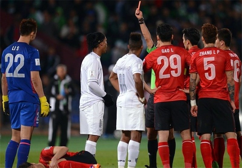 علیرضا فغانی در دقیقه 87 این بازی که مینیرو در آن با نتیجه 3 بر 2 به برتری رسید، رونالدینیو را به دلیل خطایی که روی بازیکن گوانگژو انجام داد با کارت قرمز مستقیم از زمین اخراج کرد.