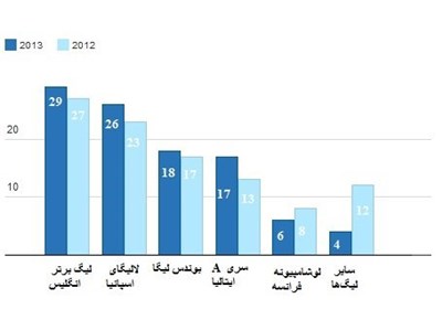 مقایسه آماری نمایندگان لیگهای اروپا در فهرست گاردین: