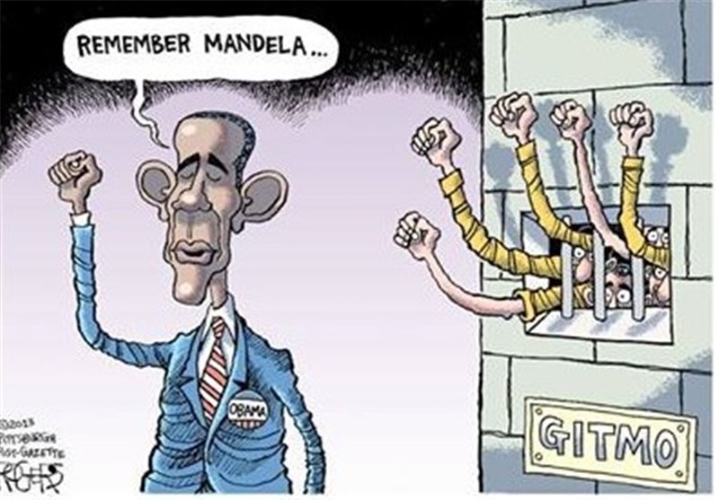شعار «یاد ماندلا گرامیباد» از زبان رئیسجمهور کشور صاحب گیتمو (زندان گوانتامو)