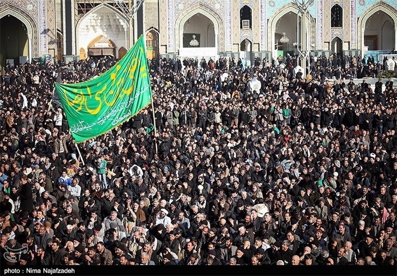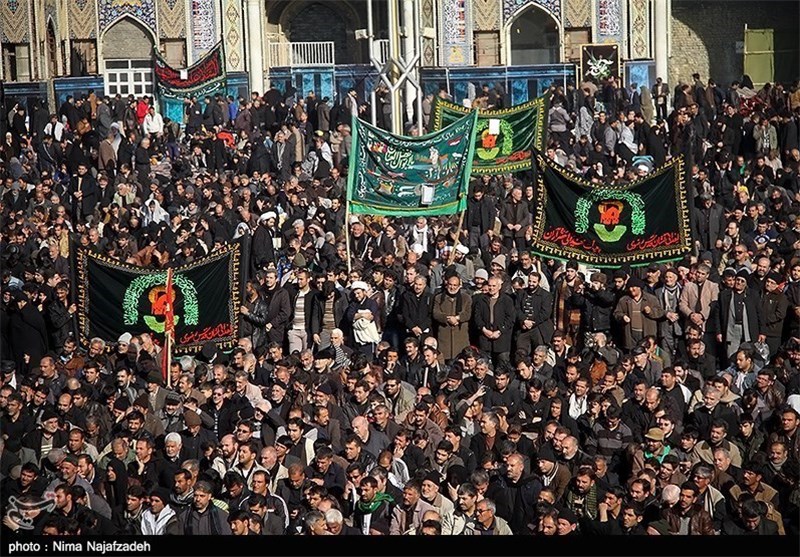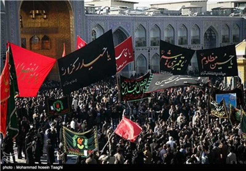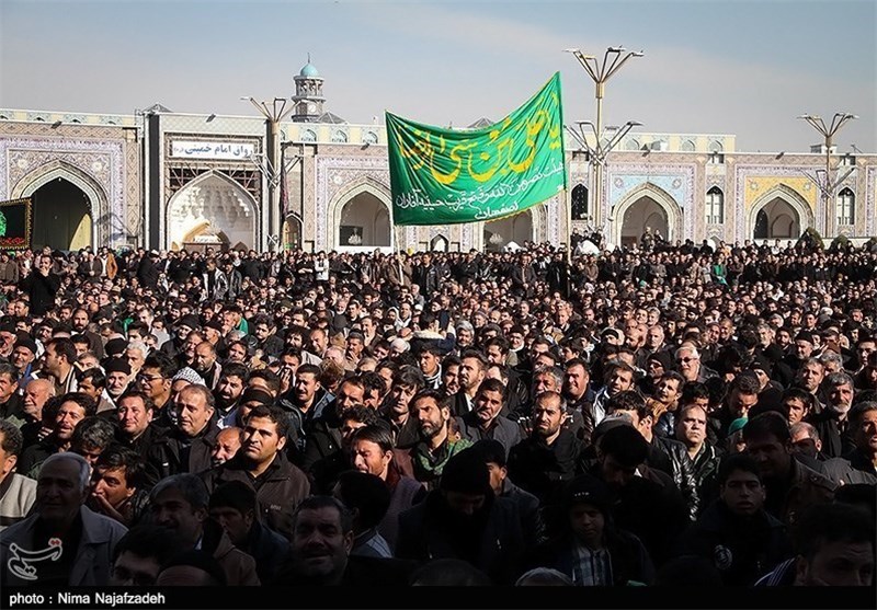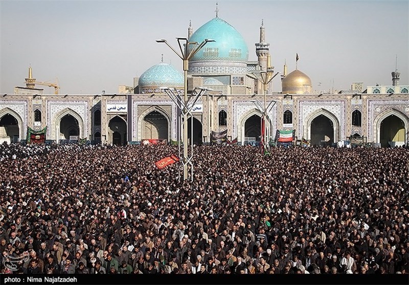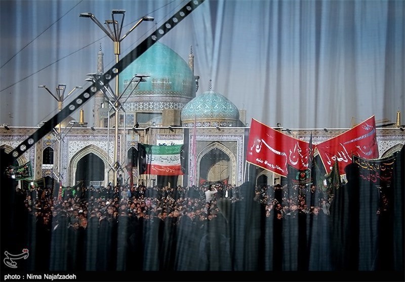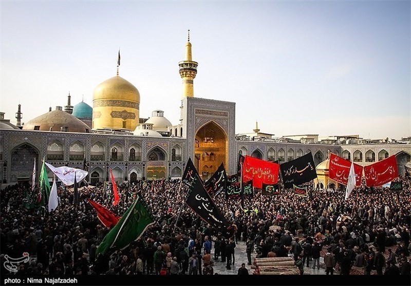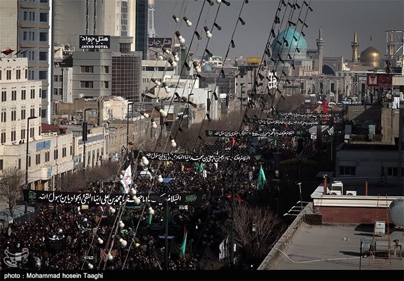 معابر منتهی به حرم مطهر امام هشتم(ع) نیز در حال حاضر مملو از خیل عظیم هیئتهای عزاداری است که از نقاط مختلف کشور خود را به حرم مطهر رضوی رساندهاند.