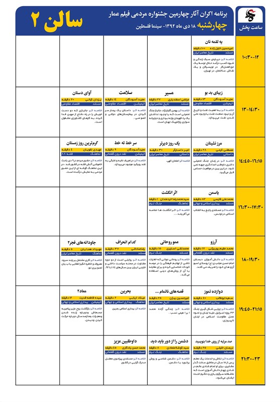 خبرگزاری تسنیم: در برنامه اکران‌های امروز چهارمین جشنواره مردمی فیلم عمار در سینما فلسطین نام فیلم «خاک و مرجان» آخرین ساخته مسعود اطیابی نیز به چشم می‌خورد.