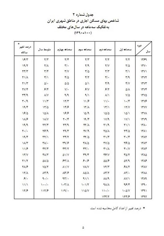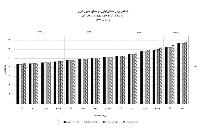 براساس محاسبات بانک مرکزی، شاخص بهای مسکن اجاری در شهرهای متوسط در سه ماهه دوم سال 92 به عدد 133.8 رسید و معادل 7 درصد بالاتر از شاخص مذکور در سه ماهه اول قرار گرفت. افزایش این شاخص نسبت به سه ماهه مشابه سال قبل 21 درصد بوده است.