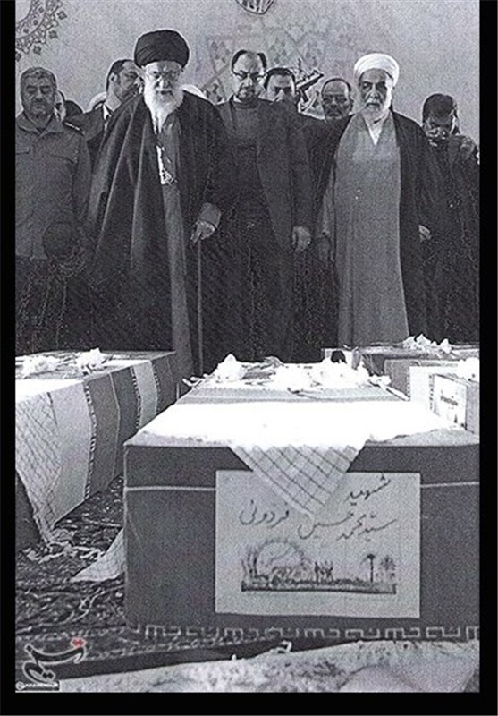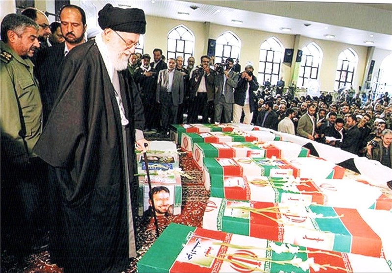 حضور مقام معظم رهبری بر سر تابوت شهدای اقتدار و اقامه نماز بر پیکر شهیدان