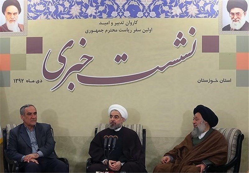 حجتالاسلام روحانی در پاسخ به سئوال یکی از خبرنگاران مبنی بر وضعیت تخصیص 2 درصدی درآمد نفت به استان خوزستان خاطرنشان کرد: موضوع تخصیص 2 درصد از درآمد نفت به خوزستان را بررسی میکنیم اما این قول را نمیدهیم چرا که این موضوع جای کار کارشناسی دارد، دولت نمیتواند به تنهایی در این زمینه تصمیم بگیرد، بنابراین نیازمند بررسیهای بیشتری هستیم.