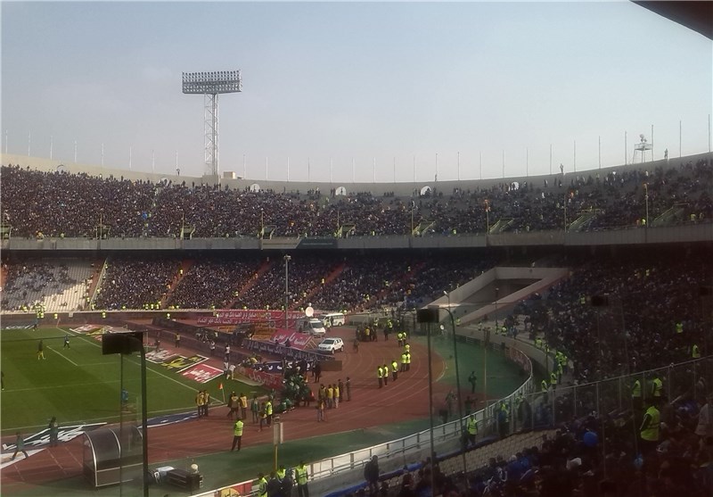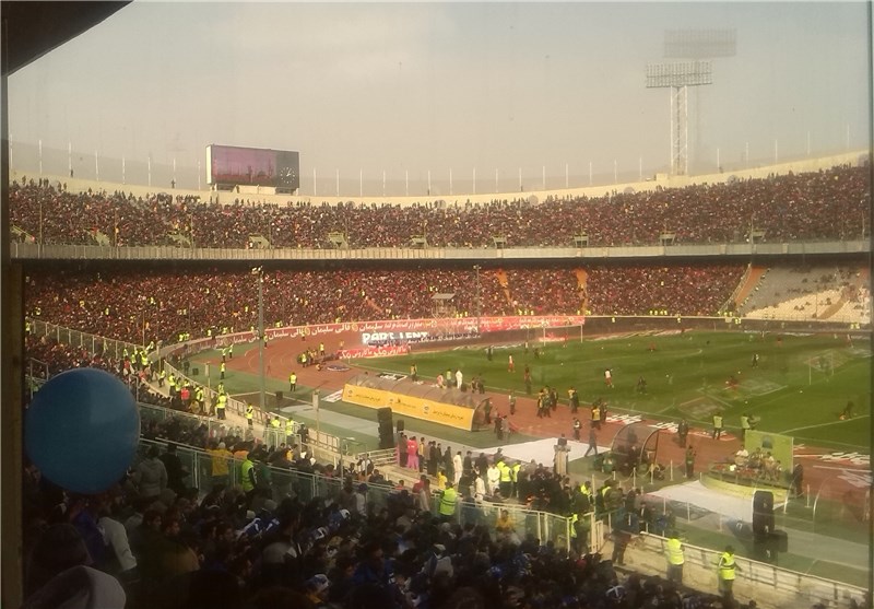 * با نزدیک شدن به آغاز بازی بر تعداد تماشاگران افزوده میشود ولی در سکوهای روبهروی جایگاه جاهای خالی دیده میشود.