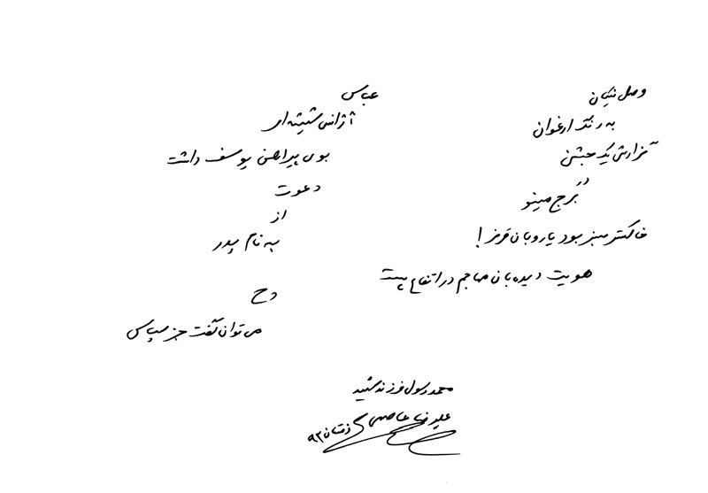 آنها برای عموابراهیم‌شان دل‌نوشته‌هایی نوشتند و تقدمیش کردند که یادگاری باشد در این گنبد دوار.
