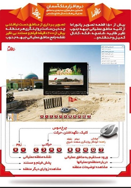 - بیش از 150 قطعه تصویر پانورامای 360 درجه سه بعدی از کلیه یادمان ها (شلمچه ، طلاییه و دوکوهه و ...)