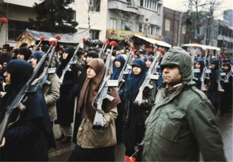 گروهی از زنان انقلابی، تفنگ بر دوش به خیابان آمدهاند. گلهای بالای تفنگها نمادی از صلح و دوستی است. آنها در حمایت از گروگانگیری در لانه جاسوسی امریکا به خیابان آمدهاند. سال 1358