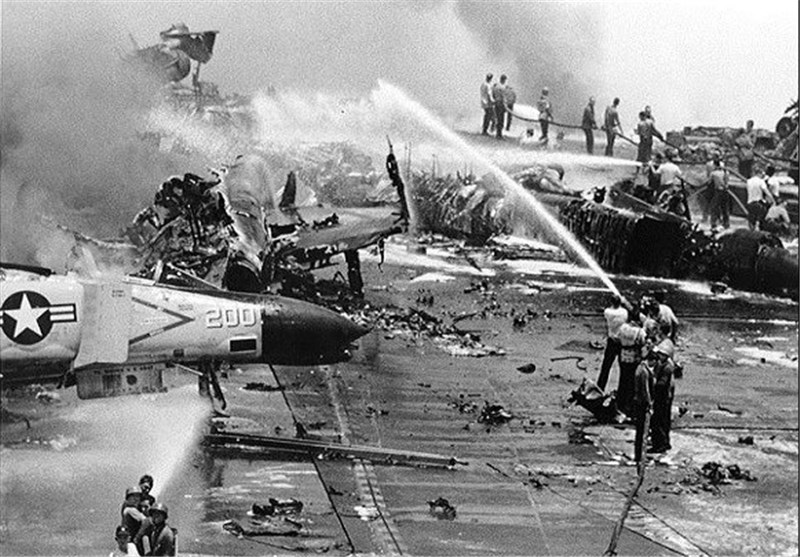 اتفاق مشابه به آن دو سال بعد در ناو هواپیمابریو اس اس اینترپرایز رخ داد و انفجار این راکت در اینترپرایز نیز منجر به مرگ 27 نفر و زخمی شدن 314 نفر همچنین نابودی 15 هواپیمای دیگر شد !
