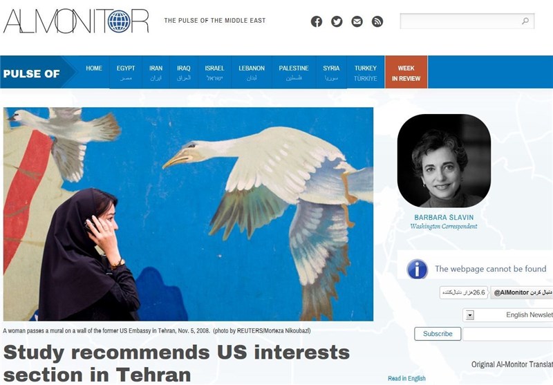 دیروز، «پایگاه خبری - تحلیلی المانیتور» وابسته به «اندیشکده شورای آتلانتیک» - وابسته به ناتو - در گزارشی به قلم تحلیلگر ارشد آمریکایی، «باربارا اسلاوین»؛ توصیه تأسیس دفتر حافظ منافع آمریکا در ایران را مورد بررسی گذاشت. «اسلاوین» نوشت: « از زمان بحران گروگانگیری 1979 - 1981 میلادی، هیچ دیپلمات مستقر آمریکایی در ایران حضور نداشته است اما زمان میتواند، به تدریج به بازگرداندن آمریکاییها به ایران، با توجه به پیشرفتهای اخیر در مذاکرات هسته ی ایران و موفقیتهای خارقالعاده در ارتباطات سطح بالا بین مقامات ایران - آمریکا؛ منجر شود.