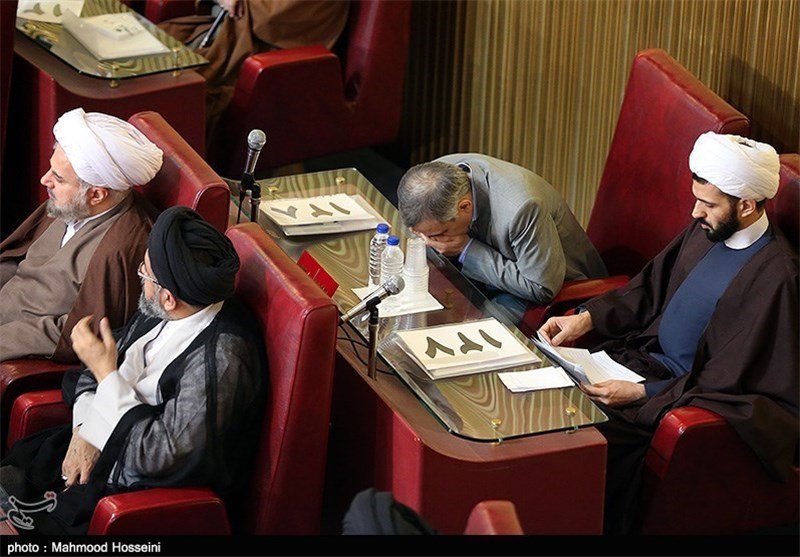 ** در طول سخنرانی آیت الله محمد رضا مهدوی کنی، همچنان برخی اعضای مجلس در حال ورود با تاخیر به جلسه بودند اما تا پایان لحظهای که خبرنگاران در محل اجلاس حضور داشتند، آیت الله خزعلی دیده نشد، احتمالا وی در نشست صبح امروز غایب بود.