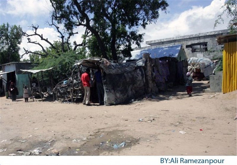 ساکنان بی‌خانمان سومالیایی طبق عادتی که دارند چادرهای خود در مجاورت یک درخت برپا می‌کنند