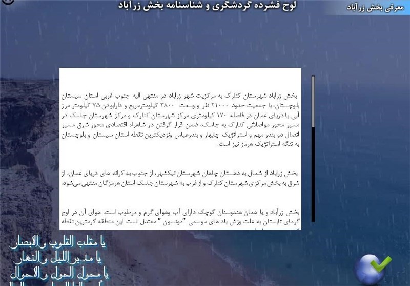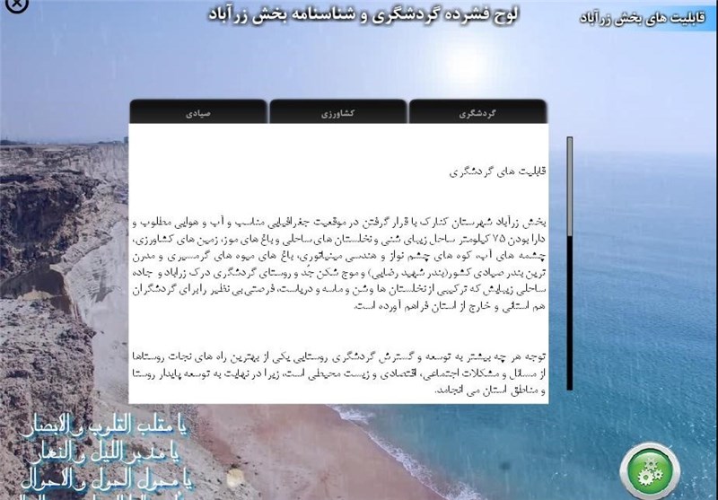خبرگزاری تسنیم: برای نخستین بار در سطح کشور، نرم افزار گردشگری محلی و شناسنامه جامع بخش زرآباد در خبرگزاری تسنیم سیستان و بلوچستان رونمایی شد.
