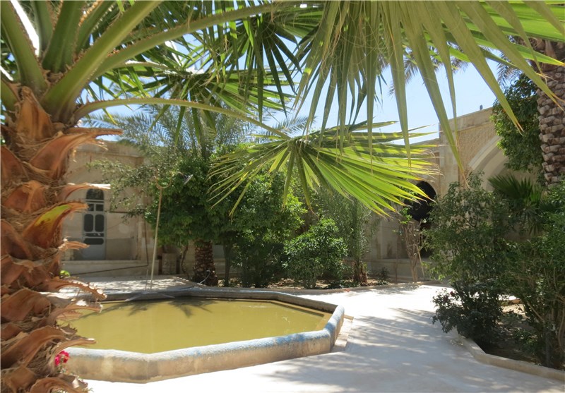 دربین حیاط مدرسه یک حوض 8 ضلعی وجود دارد که اطراف آن را باغچه‌هایی با درختان متنوع همچون نخل، لیمو و نارنج دیده می‌شود.
