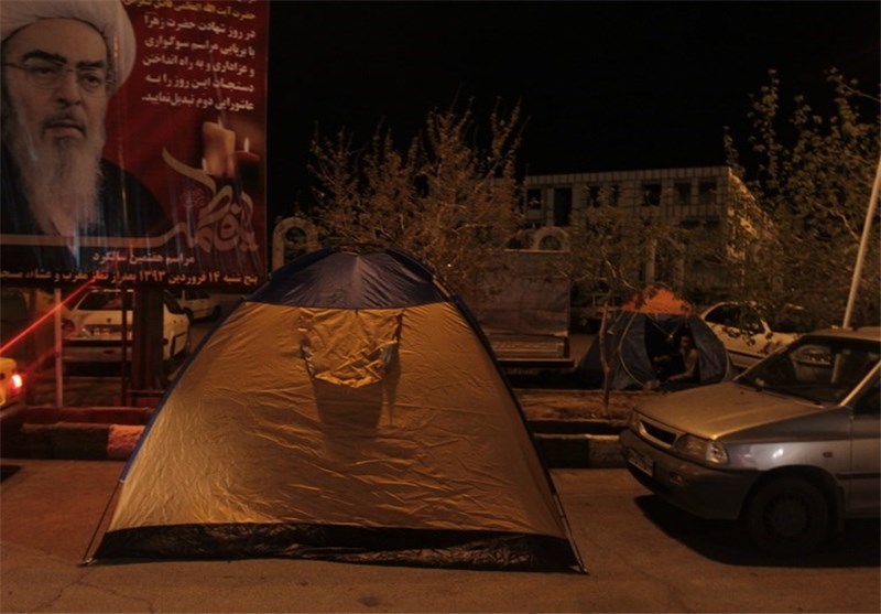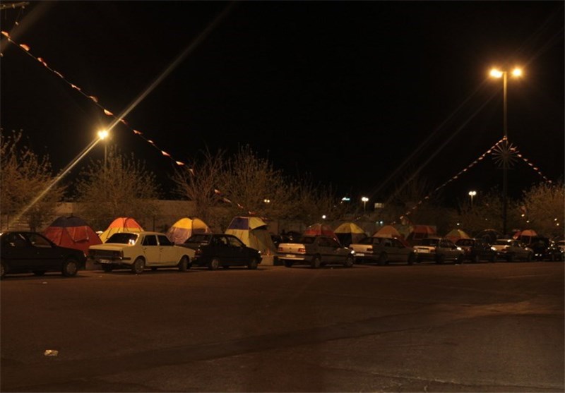 حلقه بیرونی مسجد جمکران شاهد برپایی هزاران چادر مسافرتی بود و حجم انبوه زائران به حدی بود که جای چادر زدن دیگر به آسانی پیدا نمیشد.